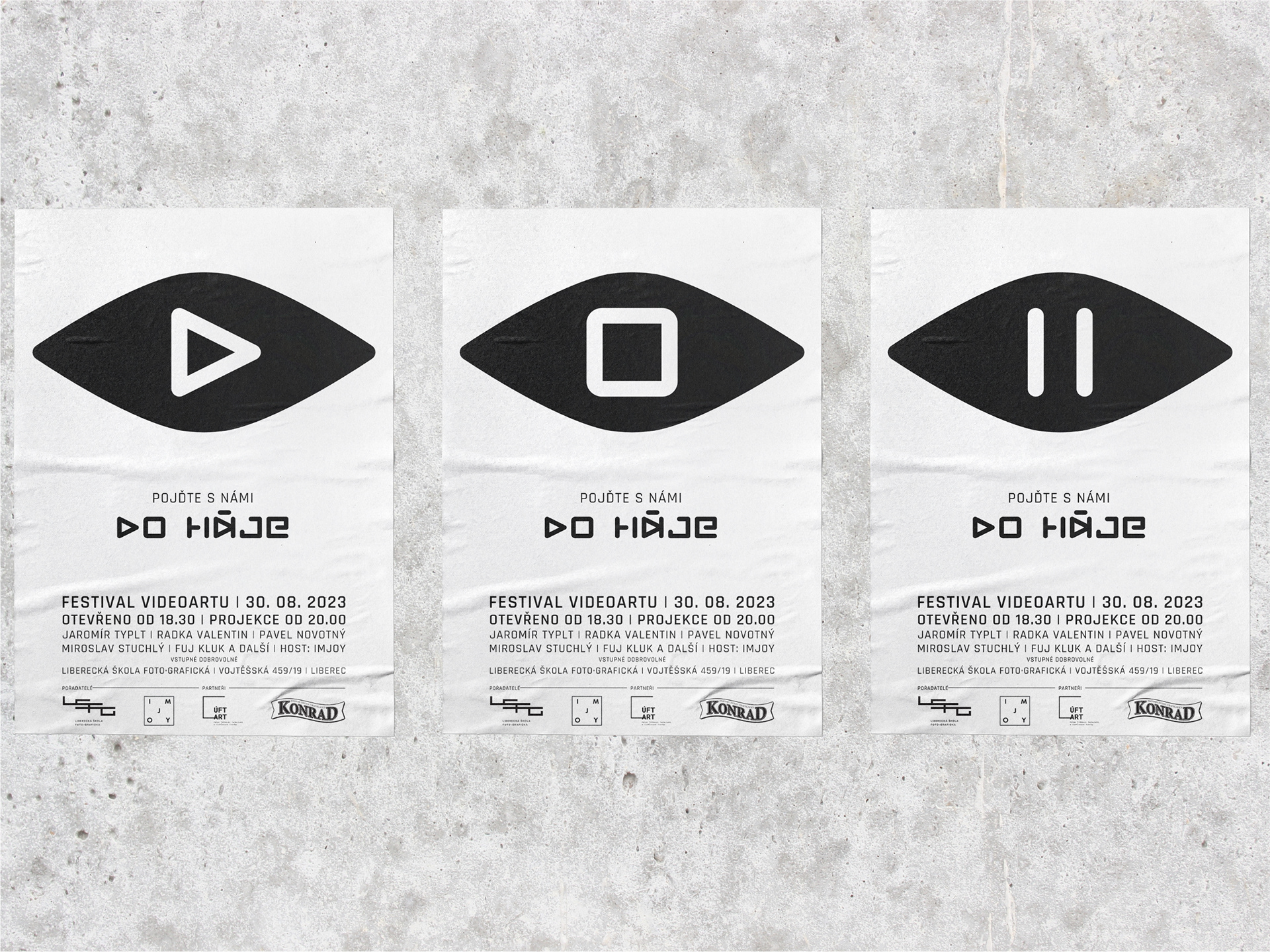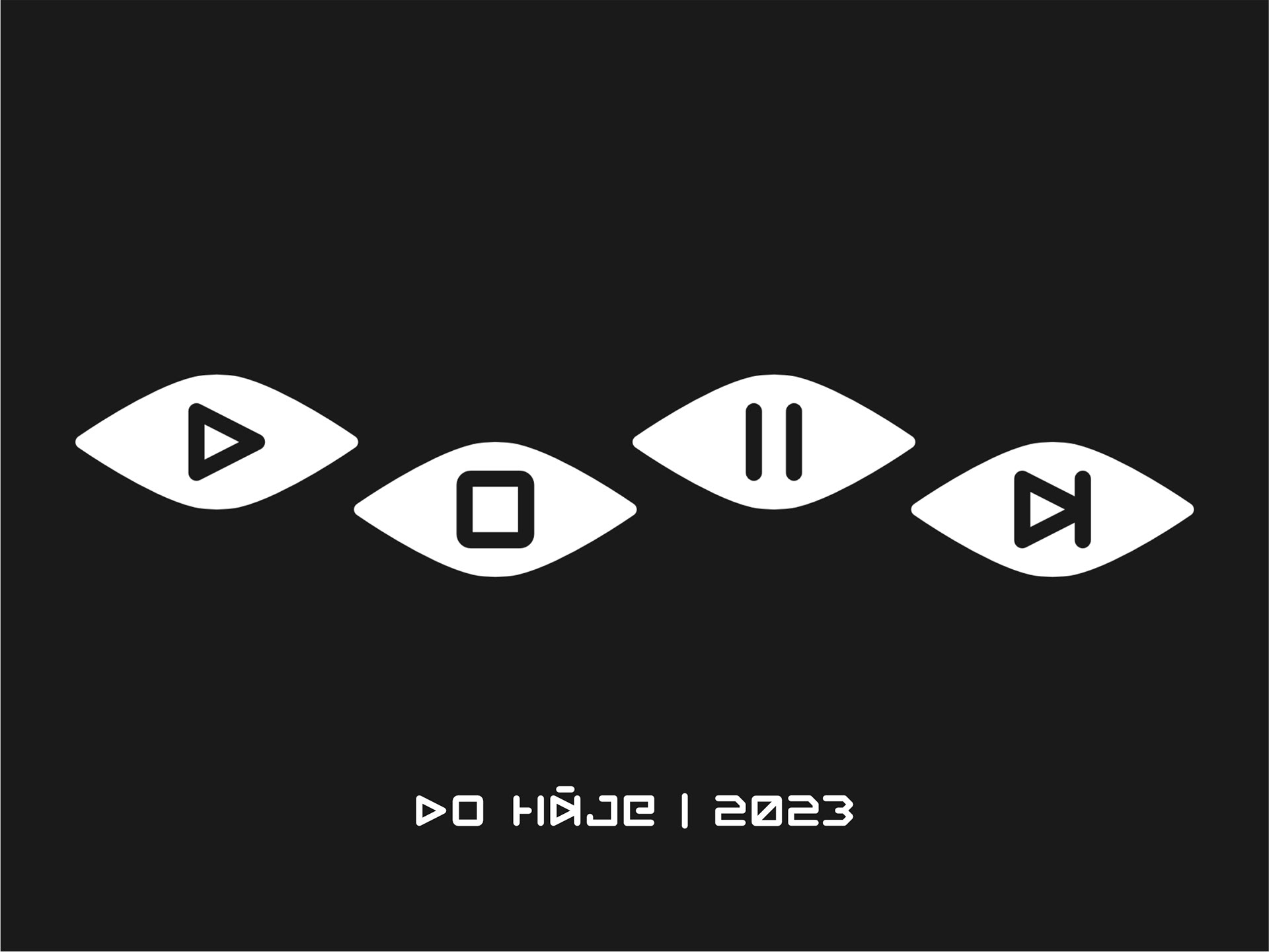 Do Háje is a video art festival that needed a visual identity for its first edition. I designed a black-and-white concept centered around the eye as a symbol of perception, and created a custom font inspired by video control buttons.